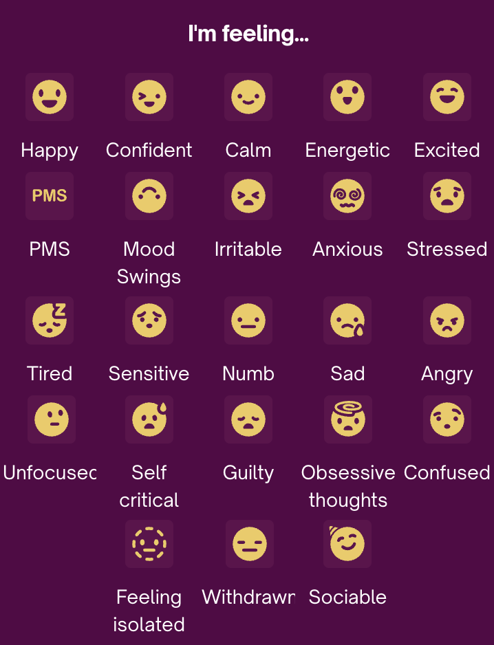 Hier kannst Du Deine Stimmung eintragen, um nachzuverfolgen, wie sie sich im Laufe Deines Zyklus verändert. Du kannst an jedem Tag beliebig viele Stimmungen eintragen.