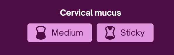 Der Bereich für Zervixschleim auf der Seite „Daten hinzufügen“, wenn „Mittlere Menge“ und „Klebrige Konsistenz“ ausgewählt sind.