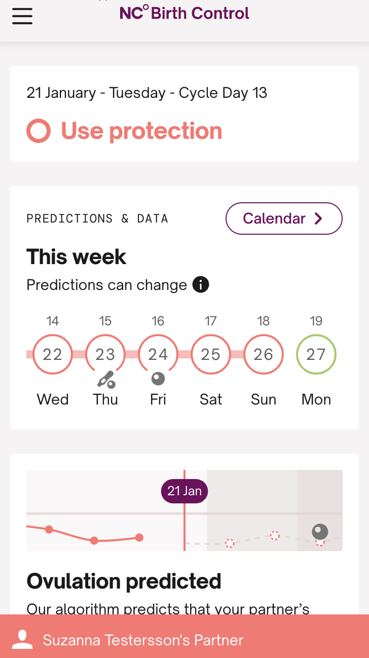 Wenn dein Partner oder deine Partnerin Natural Cycles nutzt, kann er oder sie entscheiden, die Natural Cycles-Daten mit dir über die Partneransicht zu teilen. So kannst du den Fruchtbarkeitsstatus des Tages direkt auf deinem Handy sehen.