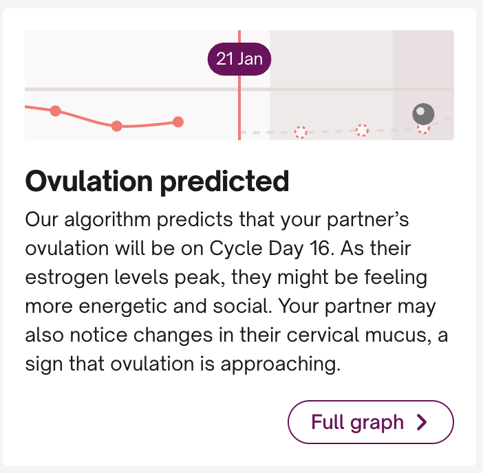 Wenn Du weiterhin Zugriff auf den Fruchtbarkeitsstatus hast, aber eine bestimmte Datenart, die Du früher gesehen hast (zum Beispiel Emotionen), nicht mehr angezeigt wird, könnte das auch bedeuten, dass Dein Partner oder Deine Partnerin das Teilen dieses speziellen Trackers beendet hat.