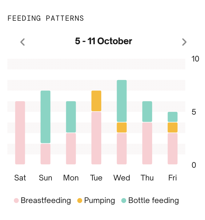 - Fütterungsmuster, wo du ein Diagramm findest, das deine Fütterungsmuster der letzten Woche zeigt.