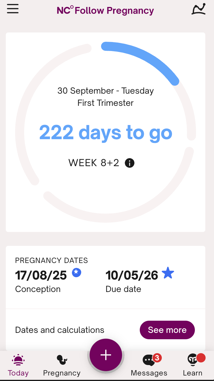 The Today view on NC° Follow Pregnancy.