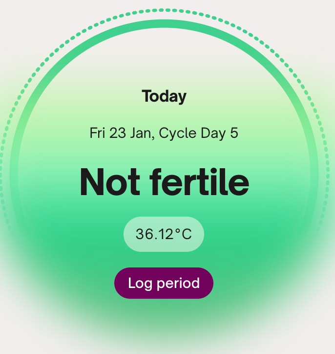 Green Days will be displayed with a green circle and the text Not fertile on the Today view.