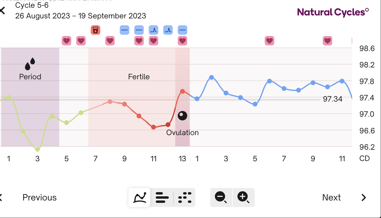 La fecha de concepción es la fecha de tu última ovulación detectada, ya que es cuando ocurrió la concepción (cuando el espermatozoide se encontró con el óvulo). Tradicionalmente, las fechas de concepción se basan en los datos de la regla; sin embargo, como Natural Cycles te permite saber exactamente cuándo ovulas, usar la fecha de ovulación te da la fecha exacta de la concepción.