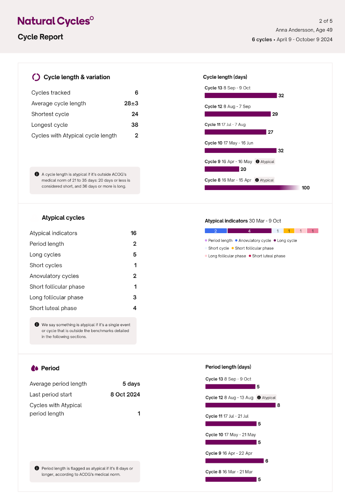 L'application dispose d'un outil Cycle Insights qui vous aide à mieux comprendre votre cycle menstruel et à obtenir des recommandations basées sur votre cycle unique. Ces informations peuvent soutenir vos conversations avec votre équipe soignante, vous permettant de prendre des décisions éclairées concernant votre santé. Pour plus d'informations, lisez cet article : Pourquoi mon cycle a-t-il été signalé comme atypique ou irrégulier ?