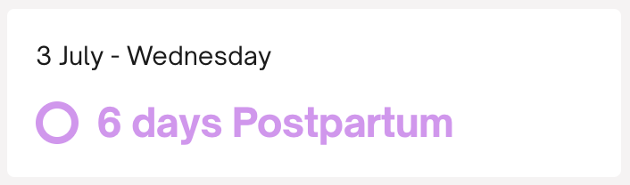 - Il tuo stato di fertilità. Riceverai i Giorni Viola (Recupero) nelle prime 4 settimane dopo il parto. Successivamente, avrai Giorni Rossi fino a quando l’ovulazione non sarà confermata. Il momento della prima ovulazione dopo il parto può variare molto da persona a persona e spesso dipende dal fatto che tu stia allattando o meno.