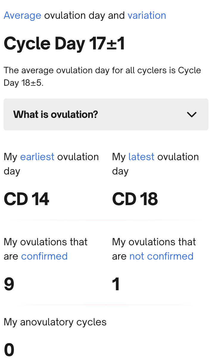 💡Observação: você precisa de pelo menos um ciclo completo com ovulação detectada para desbloquear todos os recursos do Cycle Insights.